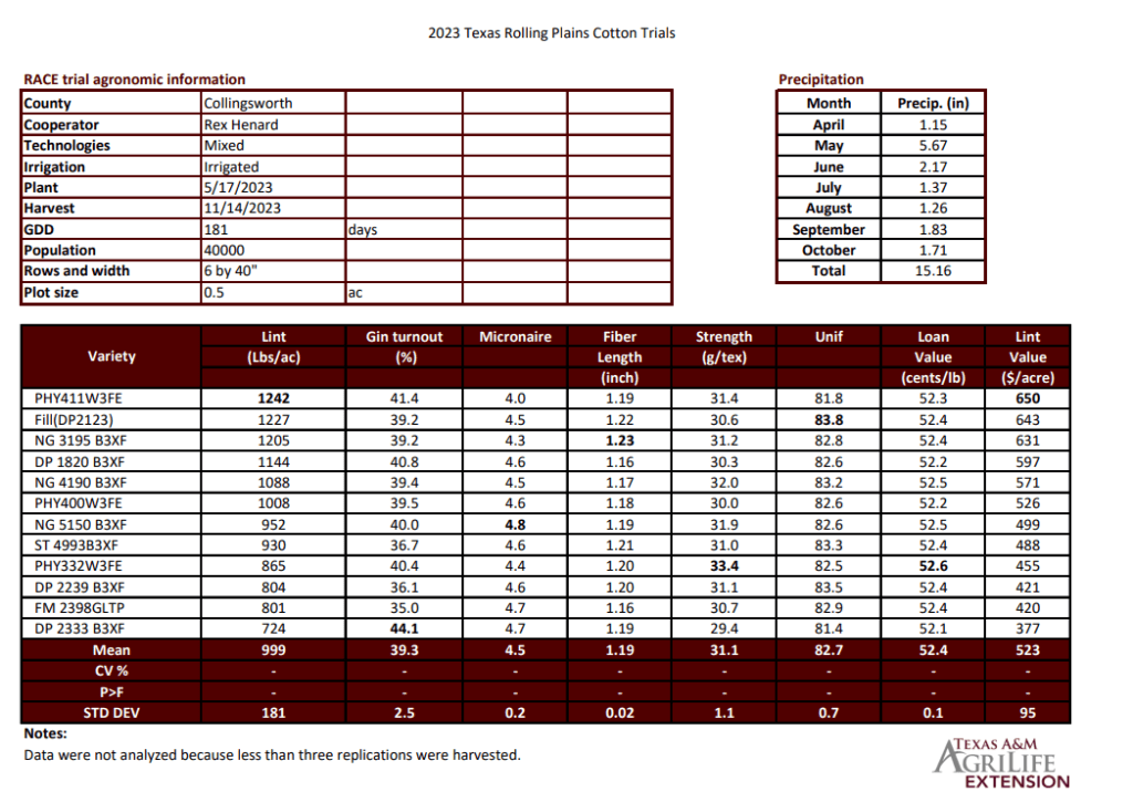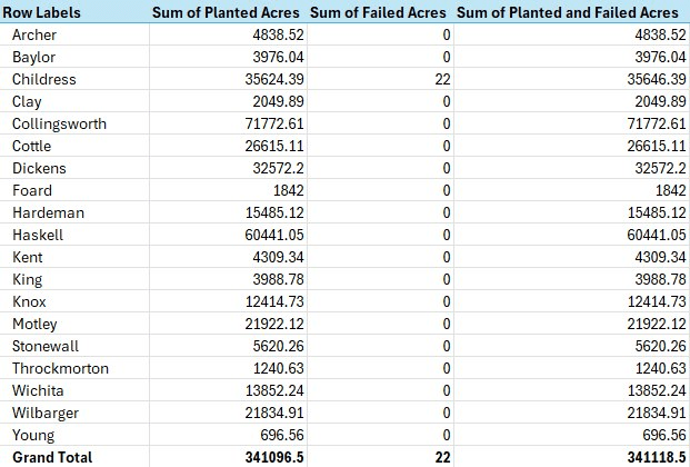 Table 1. Planted and failed acres for Texas Rolling Plains (or AgriLife District 3) cotton as of August 2024