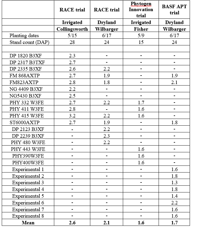 Trt 1: 40″ x 8 rows – seed cost $102/a