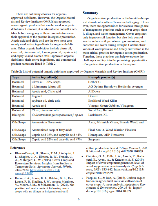 Challenges and Opportunities of Southern Texas Organic Cotton in Southern Texas